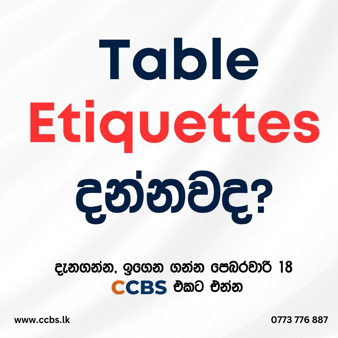 ️ Join Us for an Exclusive Food & Beverage Workshop! Date: February 18, 2025 Location: CCBS Campus, Kandy Are you a restaurant, café, or hotel professional? Or someone looking to master table etiquette and elevate your F&B skills? This workshop is for YOU! ✨ Conducted by: Mr. Nuwan Arunagith – Renowned F&B Lecturer Who Should Attend? Restaurant, café, and […]